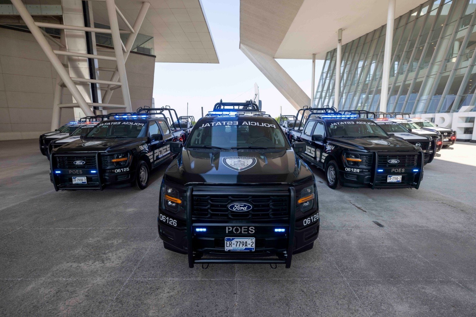 En presencia de elementos que integran el estado de fuerza queretano, el mandatario precisó que una muestra de ello es la entrega de estas 85 nuevas patrullas; así como chalecos balísticos para el 100 por ciento de la Policía Queretana; y uniformes nuevos para el 100 por ciento de las y los policías estatales, además de equipo táctico.