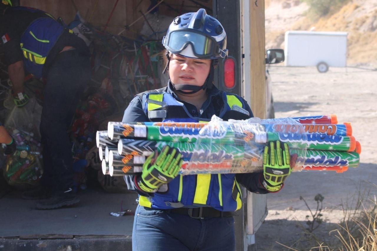 _• La destrucción del material pirotécnico, que incluyó artefactos de alto impacto, se llevó a cabo bajo la estricta supervisión de la Secretaría de la Defensa Nacional._ _• Estas acciones buscan fomentar una sólida cultura de autocuidado entre la población y generar conciencia sobre los riesgos de adquirir y utilizar pirotecnia._